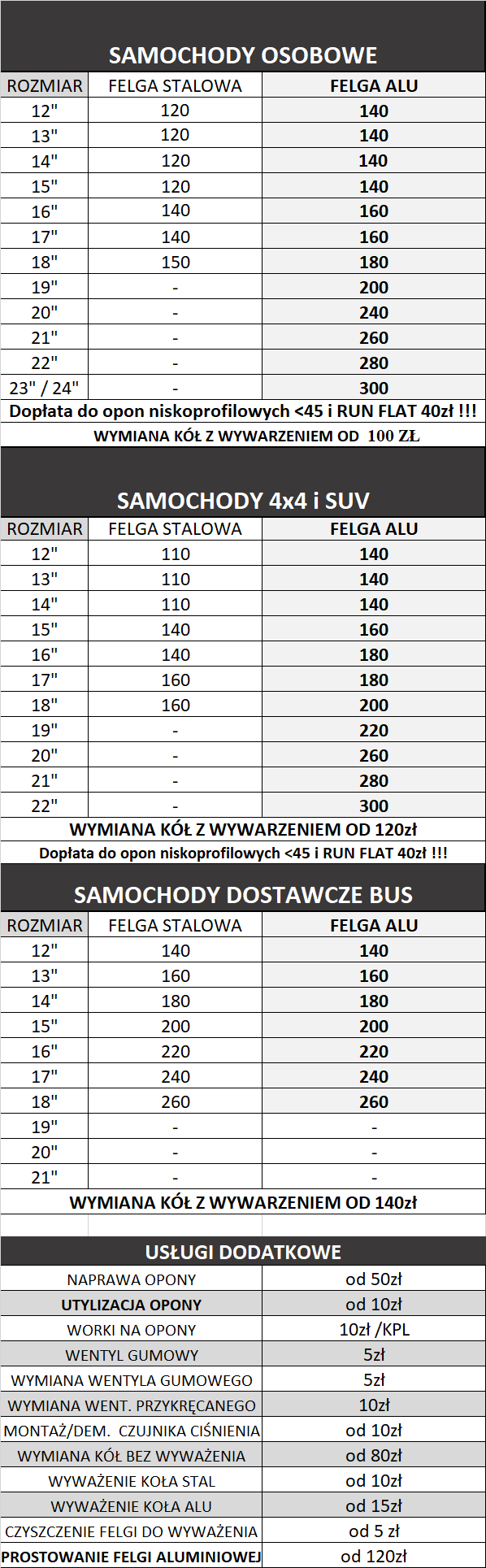 - wymiana opon